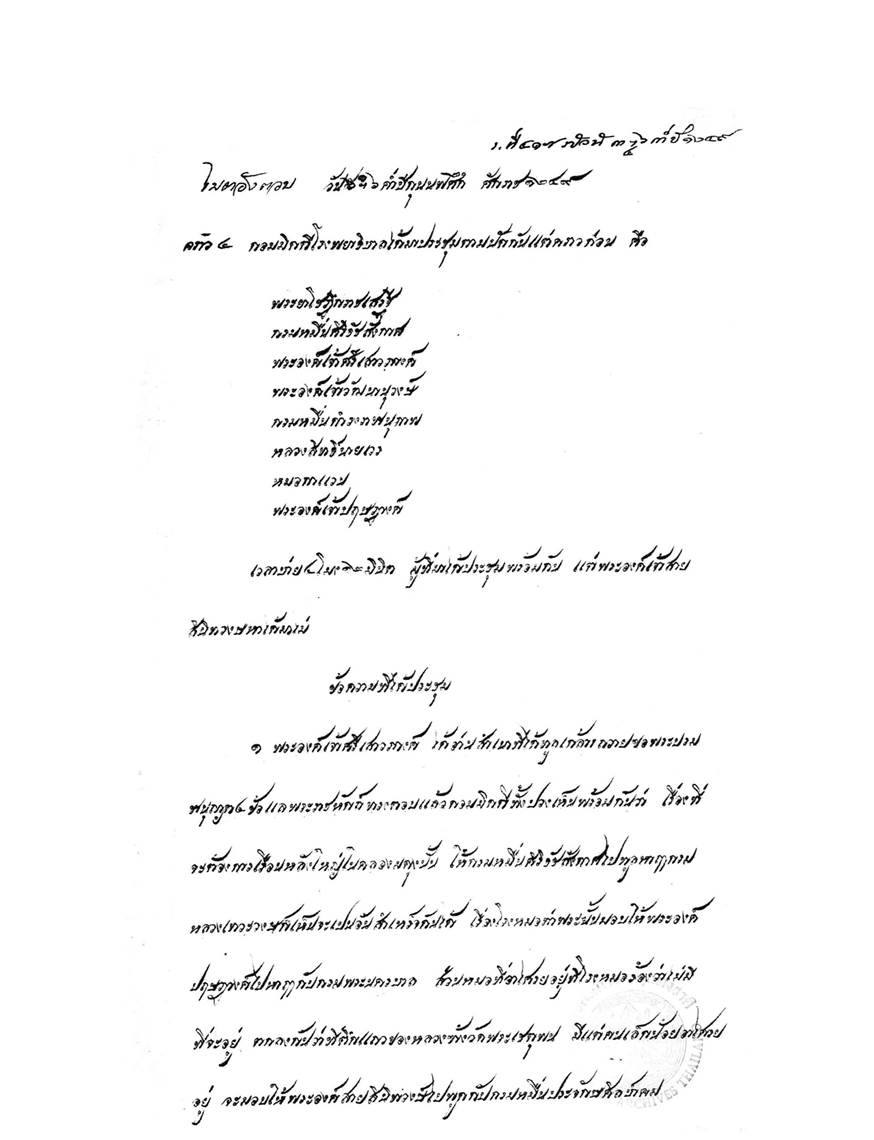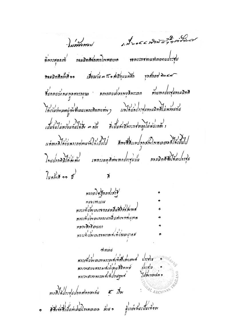 ที่ 1 กรมหมื่นดำรงราชานุภาพ เห็นสมควรที่พระเจ้าน้องยาเธอ กรมหมื่นศิริธัชสังกาศ จะเป็นแชแมนของกอมมิตตี