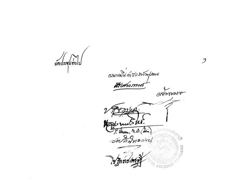 ผู้ของ กอมมิตตี จัดการโรงพยาธิบาล เมื่อ ณ วัน 4 ขึ้น 7 ค่ำ เดือน 5 ปีกุญยังเป็นอัฐศก จุลศักราช 1248 - 9 เวลาบ่าย 4 โมง จน 5 โมง 45 มินิต เลิก