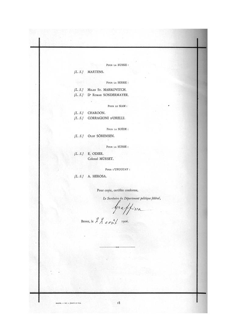 เรื่องการเข้าร่วมอนุสัญญาเจนีวาและส่งผู้แทนลงนาม